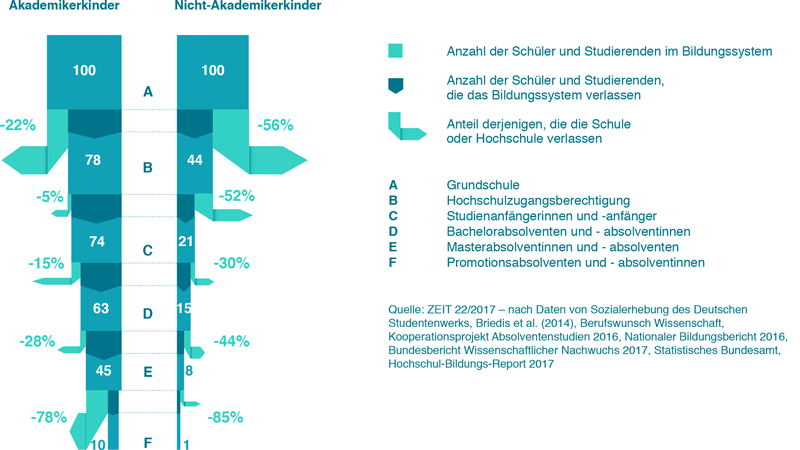 Ausbildung oder Studium? Eine Frage, die in Deutschland stark vom Bildungshintergrund der Eltern abhängt. Für Kinder von Akademikerinnen und Akademikern ist das Studium meist ein Zwischenziel, ein weiterer Eintrag in ihrem Lebenslauf, eine Chance, ihren Horizont zu erweitern und soziale Kontakte zu knüpfen – für Nicht-Akademikerkinder hingegen ist es ein Meilenstein.